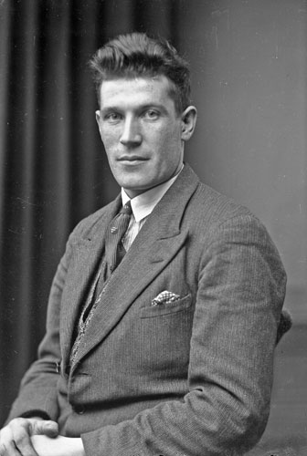 Bildtext: Mannen längst fram uppges vara siste "rättaren" på ålderdomshemmet i Tosätter, efternamn Brink. Och flickan i vit mössa är hans dotter Maj-Lis Brink f 1947. (Uppgiftslämnaren gick i skolan med henne i Tosätter åren 1954 - 1955).