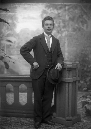 Bildtext: Olov Westlings 50-års dag. Från vänster: Karl Westling med fru Karin född Lindfors, Elin Westling gift Munter, Axel Westling med fru Karin född Hållén, Gunnar Westling, Hanna Westling gift Johansson, Märta Westling gift Brolin, Erik Westling, Hjalmar Westling, Olov Westling, Frida Westling född Svedin, Anny Westling gift Enberg, Gustav Westling,Einar Westling - son till Karl & Karin, Majvor Händel - dotter till Hanna, Allan Westling son till Axel & Karin