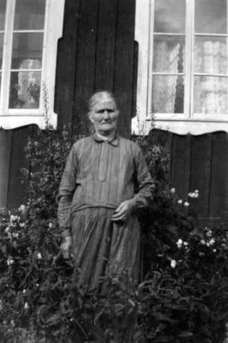 Bildtext: Skolkort, Kyrkskolan. Överst lärarinna Hedvig Hallberg. Övre rad fv: Britta Lindblom, Anny Sättlin, Berta Wedin, Ann-Marie Lindstedt (Englin), möjl Ingrid Viklund, Ingrid Persson Ådalen, Cilia Jonsson Bäckmora/Brandänge