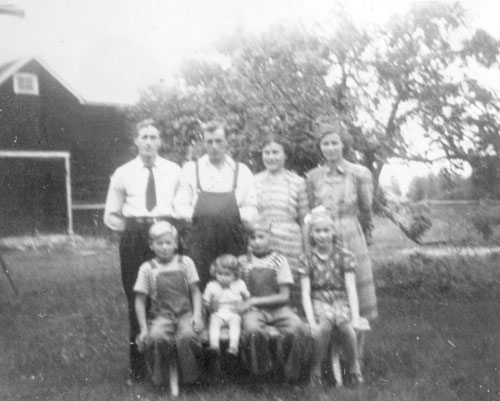 Bildtext: Karin och Axel Edströms barn och barnbarn samlade i Hålsänge sommaren 1948.
