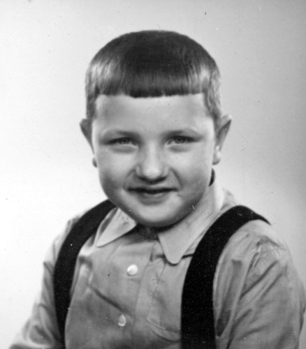 Bildtext: Brobygge över Enångersån i Åkre i samband med anläggandet av nya Riks-13 förbi Enånger. Barnen på bild: Bruno och Kerstin Svenson. Byggnaden som skymtar till höger är Åkre gård