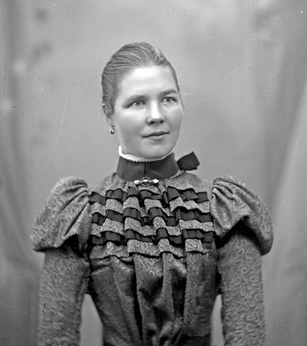 Sökord: Motivkategori:porträtt, kvinna Id:11819 Fotograf: Erika Nordin Fotoår: 1890-tal Bildnummer: en-aj-066 Förening: Enångers Hembygdsförening Land: SE Motivplats: Gävleborg Enånger Teknik: inskannad glasplåt Rättighet: Enångers Hembygdsförening Originalplats: (visas ej publikt)