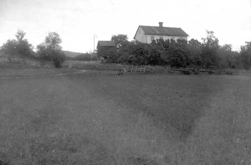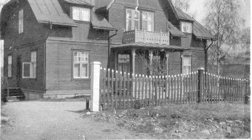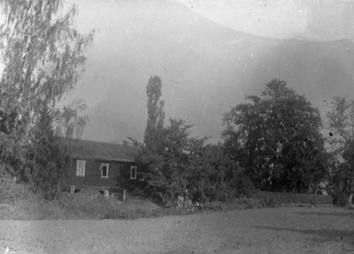 Bildtext: Byggnad, med största sannolikhet belägen efter nuvarande Hantverksvägen, nära platsen för Wallins snickeri, se översiktsbilder med nummer xx-priv-34a och en-e-175a samt bild nr en-e-152 Enligt bildsynpunkt: Kanske den byggnad där Heinemanns bageri fanns en tid under 1910 och 20-talen, byggnaden brann eventuellt på 1920-talet. Se komplettering på bild nr en-e-152