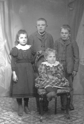 Bildtext: Karin Melin och barnen: Ida, Per.Olof, Jenny, Vilhelm, Anna, Valter, Emil, Ester, Olga. Inkommen bildsynpunkt kompletterar: Maria Kathrina Nordin 1867-1950 Fr Ö Bölan s4. Gift med: Per Persson Melin (5T28) 1860-1926. Bonde i V Tosätter 4 Enånger. Barnen: Ida Katrina 1888, Brita Eugenia 1890, Per Olof 1892, Anna Kristina 1895-1895, Esther Kristina 1896, Vilhelm 1898, Anna 1902-1971, Olga Maria 1911. Komplettering: För att veta vem som är vem; Stående från vänster; Emil, Walter, Anna, Per Olof, Olga, Wille. Sittande; Ester, Jenny, Karin, Ida.