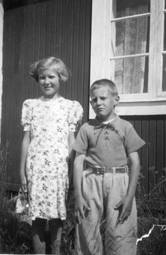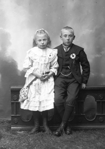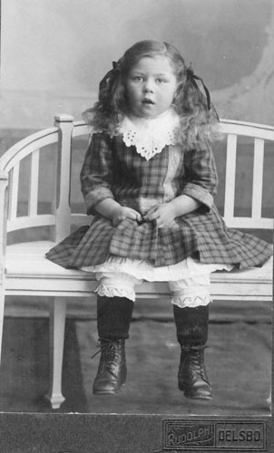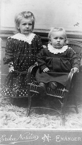 Bildtext: föreståndare på vårdhemmet i Tosätter, familjen Haag. Kompletterande bildsynpunkr: Frun kom från Hugstret i Långvind. Döttrarna Herwor (äldst) och Gunvor. Sonen Helmer f 1914. Pigan i famljen (ej på bild) var Brita Carolina "Lina" Lindblom-Åker