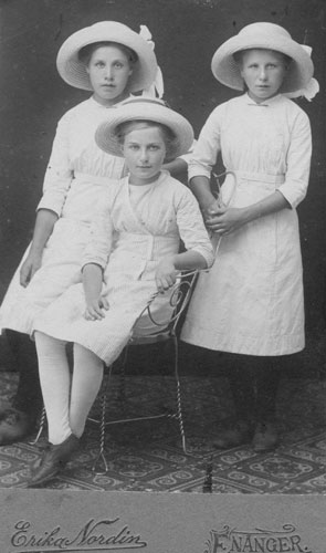 Bildtext: Översta raden fr.v Jonas Andersson Änga, Erik Gustafsson Hålsänge, Okänd kvinna. 2:a raden fr.v Tilda Henriksson Änga, Margareta Långvind Hålsänge, Tonny Andersson, Henning Gustafsson Rössånger. Nedre rad.fr.v Einar Andersson Änga, Erik Gustafsson Rössånger, Henrik Andersson Änga, Ingrid Gustafsson Rösånger. Kortet är taget på bron i Norrby Rösånger