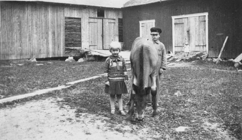 Motiv från Strand i Borka. Inkommen bildsynpunkt uppger: Anders Enbom, son till Joel Enbom, Strand i Borka. Flickan namngiven som Iris, dotter till August