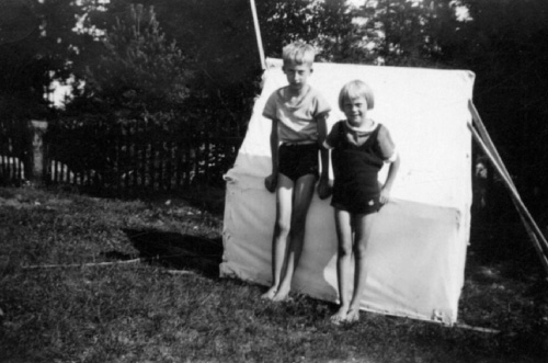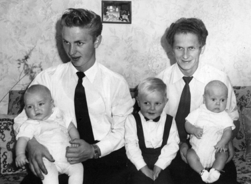Bildtext: Från vänster: Gunnar Hedlund, Erik Åkerlund, Greta Hedlund, Irene Burman. Barnet är Bengt Åkerlund