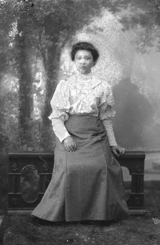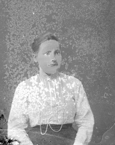 Sökord: Motivkategori:porträtt, kvinna Id:358 Fotograf: Erika Nordin Fotoår: okänt Bildnummer: en-b-142 Förening: Enångers Hembygdsförening Land: SE Motivplats: Gävleborg, Enånger Teknik: inskannad glasplåt 9x12 Rättighet: Enångers hembygdsförening Originalplats: (visas ej publikt)