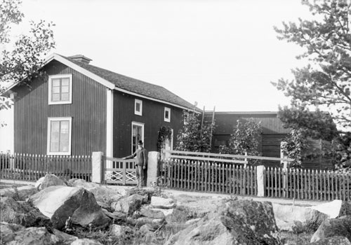 Bildtext: tre herrar utanför Sundins, Lövgrens sportaffär i bakgrunden. Mannen i mitten kan vara en bror till Wille Sundin, Viktor. Han dog i 50-årsålderna på "kilen" (det lilla röda huset på vänster sida militärvägen strax innan E4) där han bodde med sin syster Emma Sundin. Emma var mor till Greta Sundin och handlare Sven Sundin, Gryttje, Gnarp. Inkommen bildsynpunkt: ynglingen till höger ska vara Veikko, krigsbarnsplacerad hos Sundins - se bild: kh-priv-14