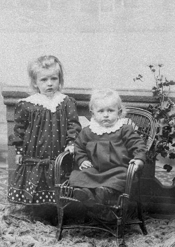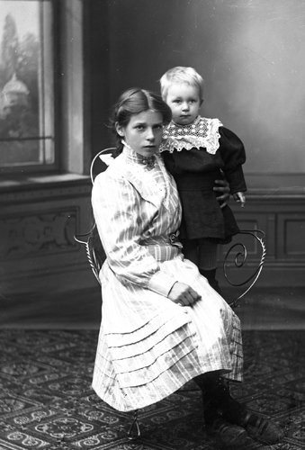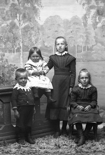 Bildtext: Karin Sundqvist vid Berghem? Inkommen bildsynpunkt meddelar: ?,?, Maken Albert,?, mågen Erik Andersson. Barnen är Britt-Marie, Conny o Christer Andersson barnbarn till Karin