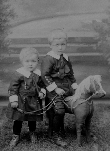 Bildtext: Smeden Persson med hustrun Anna f Svedin, Ådalen, samt deras två barn, Ebba och Axel). Se även brudkortet. bild nr: en-e-39