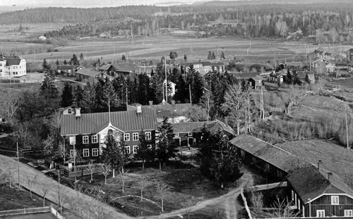 Övriga okända. Ytterligare bildsynpunkt meddelar: Bakre raden: Okänd, okänd, Gun-Britt Brink(dotter till Erik Brink), Okänd, Majlis Brink (dotter till Erik Brink), Anna Brink (hustru till Erik Brink.) Längst fram: Erik Brink. Familjen Brink kom från Bjuråker. När ålderdomshemmet brann inrättades ålderdomshem i gamla skolan i Svedja. När sen Hällgården i Njutånger öppnades flyttade familjen till Grillby i Uppland
