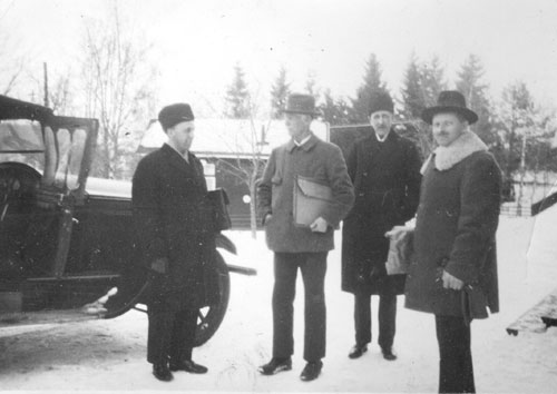 Bildtext: Mannen längst fram uppges vara siste "rättaren" på ålderdomshemmet i Tosätter, efternamn Brink. Och flickan i vit mössa är hans dotter Maj-Lis Brink f 1947. (Uppgiftslämnaren gick i skolan med henne i Tosätter åren 1954 - 1955).