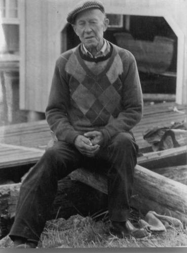 Bildtext: Från Våtnäs. Fv: Ida Svedin, Edit Jonsson, Joel Enbom, Agda Jonsson, Agust Burman, Karin Enbom, Per-Johan Jonsson. Barnen: Inger Svedin, Ruth Jonsson, Arne Jonsson