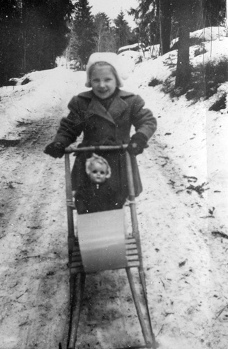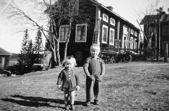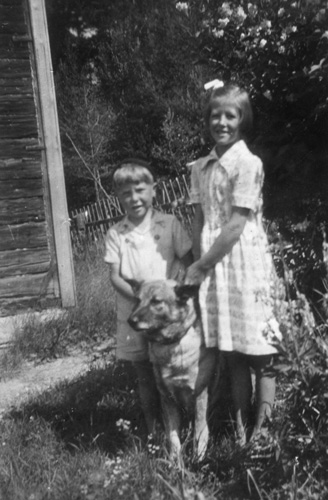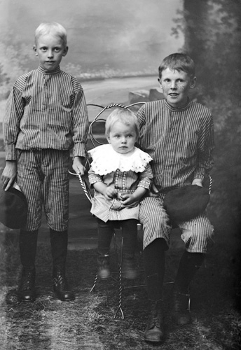 Bildtext: Hilding och Anny Enberg med Johnny, och Elsy Munther. Platsen är Grimbo