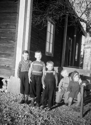 Syskonen Eriksson, Holmen. Barn till Hans Erik Hansson. Inkommen bildsynpunkt kompletterar: Hans Erik Hansson 1870-1940 Alma Kristina Fläck f.1872 Fick barnen: Erik Johan 1898-1989 Karl 1901-1958 Emil 1901-1988 Gunnar 1905-2006 Verner 1908-1985 Ester Kristina 1910-2002