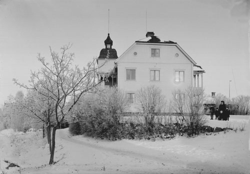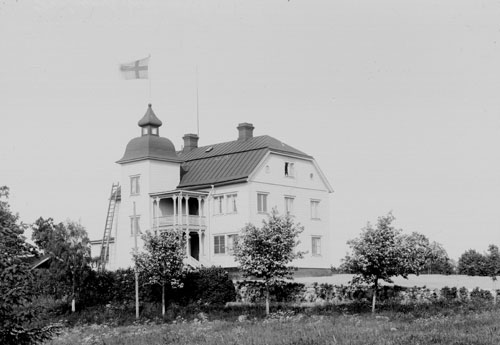 Bildtext: Från ”Ysterhamna” på Våtnäs, Skötbåtar lastade med människor, Stugan överst kan vara Henning Nordins (revs 1943 och en ny stuga uppfördes) Den vänstra stugan med utkragande tak är i dag mycket större och där fiskade Albert Brolin till 1960-talet. Den ägs i dag av Margit Brolin m fam., sonhustru till Albert. Stugan på höjden ägdes av Axel Brolin men kan ha ägts av Henning någon tid. Sjöboden till höger är ombyggd och ägs numera av Bengt Wickman.