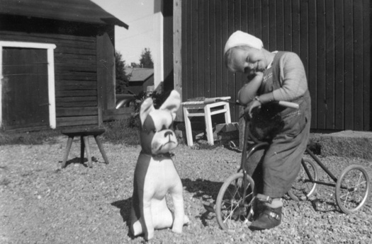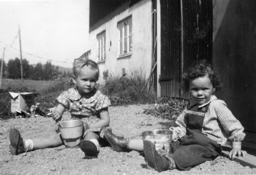 Bildtext: Under halva 1940 talet och hela 1950 talet spelade Enångers IK sina hemmamatcher på fotbollsplanen i Vedmora. Brovallen invigdes först 1960. Ett stående inslag var att efter match samlades spelare med familjer på Folke Axelssons kafè och bageri på Stolpen, Tosätter. Pommac och bakelse till oss barn och Kaffe med bakelse till de vuxna. Fr v vid bordet Alve Melin, Nyåker och Olle Edström, Hålsänge. Med ryggen mot kameran antingen Sigurd eller Ingemar Lindblom, Tosätter. Stående bakom Olle Edström är Gösta Asplund, Svedja. Samt lagledaren Lasse Eriksson, Sätra sittande till höger. (se hela laget på bild nr: cae-priv-7)