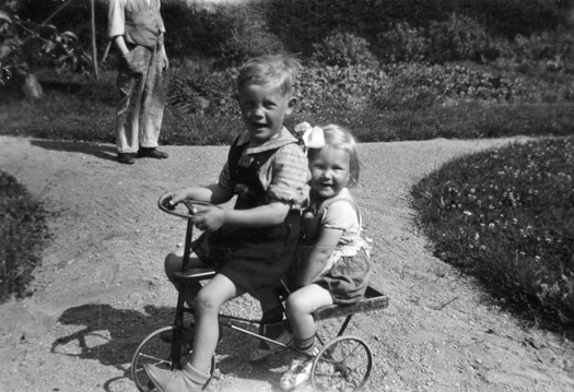 Bildtext: Oljemålning på bricka av Enångerskonstnären Elsa Helsing. Johan och Agnes hus i Finnika. (Tavlan finns nu hos sonen Olles dotter i Västtjär) Johan född 1900 i Grängsjö. Son till Karl "Spet-Kalle" och Bricken Sjödin. Agnes född 1905 i Rönningen, Haga. Dotter till Karl och Ida Broman (född Envall). När barnen växte upp bodde de i Finnika. Tidigt 60-tal flyttade Agnes och Johan till Njutånger. Köpte fastigheten av Albin Bodin i Skarplycka. (Njutånger bild nr: alfw-priv-19). Johan drev här snickerirörelse. (Lådtillverkning). De hade barnen Arvid, Gunnar, Olle, Gösta, Lennart och Göta.