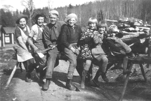 Bildtext: Elsa och Sigurd Bolin med bröllopsgäster. Inkommen bildsynpunkt: Hette Sigvard Bolin, gift med Ingrid, född Berg, dotter till Gerhard Berg i Nickora, Njutånger. De flyttade till Arvika där Sigvard blev stationschef på bilbesiktningen. Han var son till Carl Bolin, född 1904 i Enånger. Sigvards mor hette Elsa och var också född i Enånger. Året var 1905. Hennes flicknamn var Svensson.