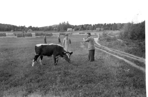 Sökord: ko, man, hus, gårdar, landsväg