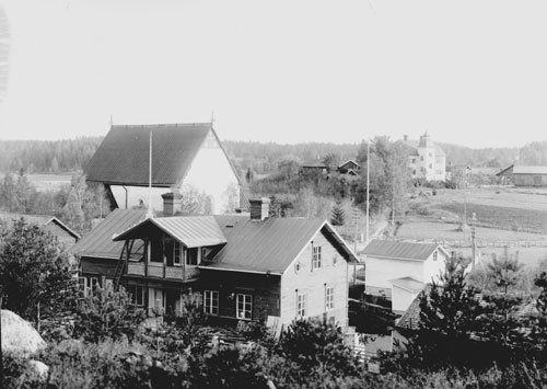 Bildtext: Första PRO-kören i Enånger. Fv: Anders Fernlund, Anton Larsson, ?, ?, ?, Greta Wiklund, Greta Fernlund, Klara Johansson, Karin Ståby vid pianot, Främre rad: Anna Larsson, fru Uno Forsman, Uno Forsman (med fiol) Knut Lindblom med cello