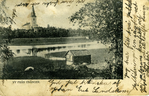 Bildtext: sannolikt från en prästvisitation i Enånger. Mannen till höger är kyrkoherde Hans Persson. Inkommen bildsynpunkt kompletterar: Mannen till vänster om Hans Persson är rimligen ärkebiskop Yngve Brilioth. Brilioth var f.ö gift med Nathan Söderbloms dotter Brita och Nathan hade genom sin farmor Margta Olofsdotter i Orsta Söderala, en släkttråd till Enånger. Margtas mor, Anna Jansdotter (1754-1838), var således född i Nora nr 1 som en av två döttrar till bonden Johan Svensson och hans maka Margta Nilsdotter från Östby nr 2. Den andra systern (med namn efter sin mor) gifte sig med bonden på Långvind nr 3, Olof Pehrsson. Hemmanet såldes till Långvinds bruk 1802 och hela familjen flyttade till Norrala.