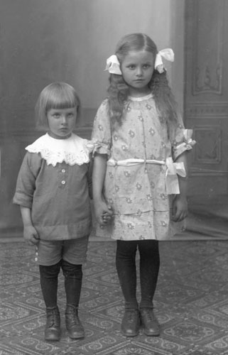 Bildtext: Bilden föreställer systrarna Ingrid och Stina Persson, Bäckmora. Ingrid till vänster, senare gift Edström, Bölan. Stina till höger på bild, senare gift Sättlin, Bölan.