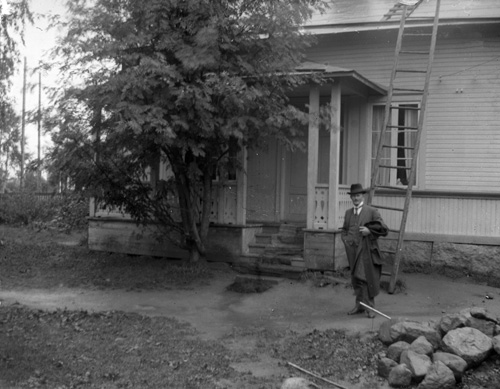 Bildtext: hus under uppförande, Huset ligger i Holmen Enånger. Det byggdes 1920 till Arthur och Rosa Colling född Enqvist av Rosas morfar trävaruhandlaren Olof Nordström som även handlade med skog till England och Amerika.