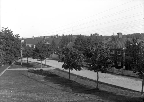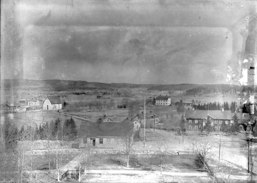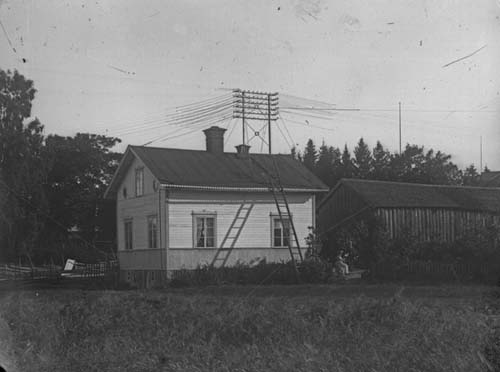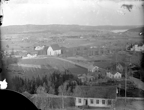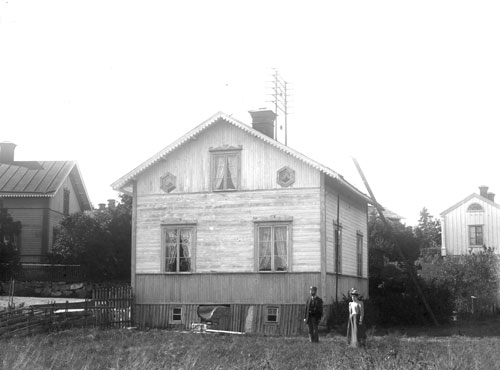 Bildtext: Urmakare Bergström m familj, Svedja. På bilden finns bl.a. missionärsparet Ekroth (fru Ekroth var dotter till urmakare Bergström) och deras tre barn. De äldsta barnen hette Zola (*1923) och Hans (*1927) Minsta sonen är Per-Stefan. Se även bild en-g-85, id nr 852, kategori "barn"