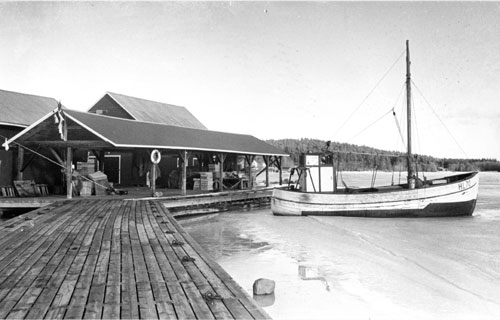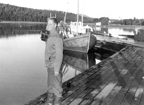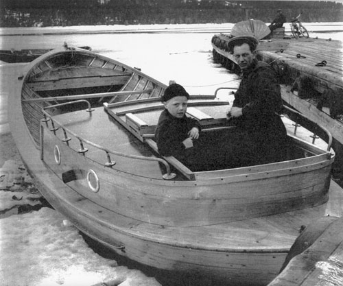 Bildtext: Samling på Söröns fiskeläge (Gunnar Östlins stuga, intill Gillingsön). Personerna (med släktboksnummer) är fv: 3F15 Anna-Greta Wiklund g Lindfors, 2M39 Bertil Östlin, 3N25 Emmy Östlin og Lindfors, 2M39 Axel Östlin, 3F15 Kristina Wiklund g Östlin, småflickorna Signe och Göta Östlin, 2L41 Ida g Engman Njutånger, 3N26 Lars-Olof Lindfors, 3N26 Karl Lindfors, 2F13 möjligen Anders Andersson, 3N26 Adolf Lindfors, 2F12 Ester Jonsson-Glad g m 2M40 Östlin, 3N26 Johan Lindfors, 6G4 Hanna Englin, 2M40 Anselm Östlin, okänd eller Anna el. Letty Jonsson-Glad