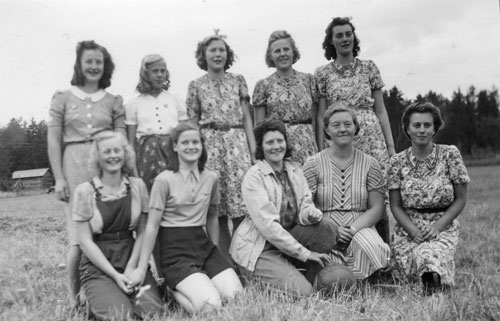 Finnikas damlag i fotboll. Överst fv Anna Westling, Barbro Bergström, Elsa Nordin, Margit Bergström, Gunda Johansson. Nedre rad: Elsa Lindfors, Alise Burman, Hilda Westling, Gunnel Svensk (syster till Anna), Irma Johansson