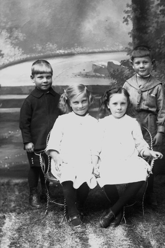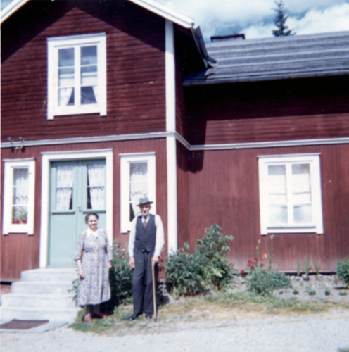 Bildtext: Karin Sundqvist vid Berghem? Inkommen bildsynpunkt meddelar: ?,?, Maken Albert,?, mågen Erik Andersson. Barnen är Britt-Marie, Conny o Christer Andersson barnbarn till Karin
