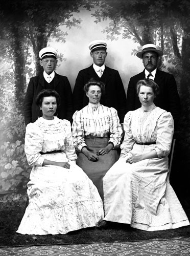 Sökord: gruppbild, gruppfoto, hus, byggnad, förstukvist Motivkategori:byggnader Id:3039 Fotograf: Erika Nordin Fotoår: okänt Bildnummer: en-l-18 Förening: Enångers hembygdsförening Land: SE Motivplats: Heden, Tosätter, Enånger, Gävleborg Teknik: inskannad glasplåt 12x16 Rättighet: Enångers hembygdsförening Originalplats: (visas ej publikt)