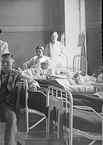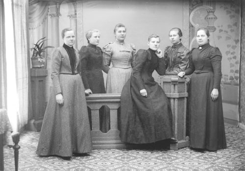 Stående: Anna Nilsson från Änga, Lydia Enström från Rå i Haga, Johanna Englin från Änga, Isiodora Kjellin från Bölan, Ada Frank från Långvind, Alma Frank från Haga (m.fl)