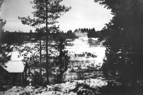 Bildtext: Revygänget bakom vårkabarén ”Frusta lätt”, på bygdegården år 1956. Överst fv: Stefan Persson, Märtha Persson, Vivi Larsson, Bertil Westling, Margit Colling, Karin Nordell, Rune Åkerlund. Främre rad: Bernt Åkerlund, Rune Sättlin, Bernt Eriksson, Sven Jonsson, K G Andersson