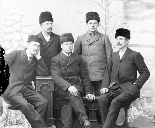 Sökord: porträtt, män, vintermössor, gruppbild