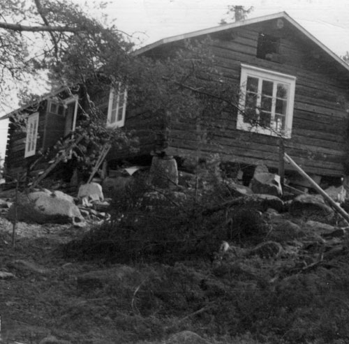 Bildtext: Samling på Söröns fiskeläge (Gunnar Östlins stuga, intill Gillingsön). Personerna (med släktboksnummer) är fv: 3F15 Anna-Greta Wiklund g Lindfors, 2M39 Bertil Östlin, 3N25 Emmy Östlin og Lindfors, 2M39 Axel Östlin, 3F15 Kristina Wiklund g Östlin, småflickorna Signe och Göta Östlin, 2L41 Ida g Engman Njutånger, 3N26 Lars-Olof Lindfors, 3N26 Karl Lindfors, 2F13 möjligen Anders Andersson, 3N26 Adolf Lindfors, 2F12 Ester Jonsson-Glad g m 2M40 Östlin, 3N26 Johan Lindfors, 6G4 Hanna Englin, 2M40 Anselm Östlin, okänd eller Anna el. Letty Jonsson-Glad