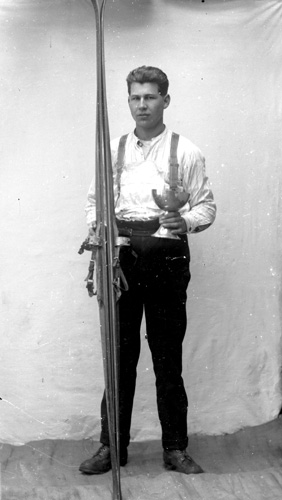Bildtext: Bilden är tagen på Västra skolans isbana och visar finallagen i Hockey-bockey serien omkr 1950, Posten Hudiksvall mot Brandkåren Enånger, brandkåren segrade.