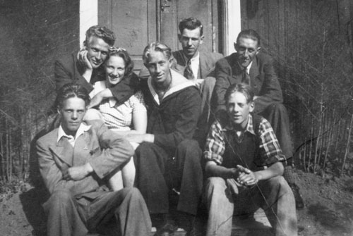 Bildtext: gruppbild från Våtnäs fiskeläge, fiskarbefolkningen. Följande namn finns noterade: Karl Bergkvist 3K10, Per Nordin 11L16, Erik Bergkvist 3K10, (okänd), Anders Johan Bergström, Vilhelm Olsson 5L20, Gunnar Norling 3R27, Anselm Gustavsson, Anders Olov Norling 3R27, Ida Norling 3R27, Adolf Jonsson 6B18, Greta Norling 3R27, Erik Olov Norling 3R27, Vilhelm Bergkvist 3K10, Per Johan Jonsson 6B17, Nils Erik Bergkvist 3K10, Adolf Nordin (X31), Johan Gustavsson (Janne) 12E7, Ingrid Gustavsson, Emelie Nordin, (okänd), Elvira Högblom 15D29, Ester Bergkvist 3K10, (okänd), Edit Jonsson 6B17, Erika Bergkvist 3K10, Ingrid (Inga) Gustavsson 12E7, Emmy Nordin 11L10, Agda Jonsson 6B18, Arne Jonsson 6B18, (okänd), Karin Bergkvist (3K10)11L10, Elin Gustavsson 12E14, Linnea Dahlbom 11L10 *), Erik Nordin 11L16, Elsa Nordin 11L16, (okänd), Gösta Högblom 15D29, Gunnel Högblom 15D29, Albin Jonsson 6B17, Sven Nordin. *) som skänkte Bro-gård i Njutånger till EFS.