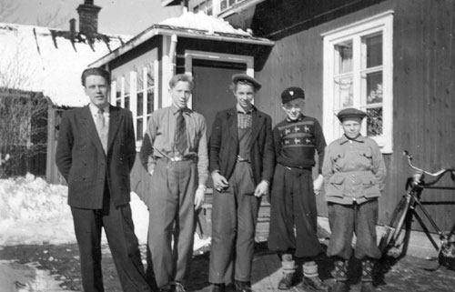 Bildtext: Enångers IK´s B-lag 1947. Stående fv: David Hansson, Stig Brodin, Helmer Enberg, Ingemar Lindblom, Erik Enström, Einar Westberg, lagledare Åke Blomström. Knästående fv: Gösta Holm, Gunnar Forsberg, Ragnar Klang, Rune Carlsson, Helge Sättlin. Bilden tagen vid en match i Norrbo