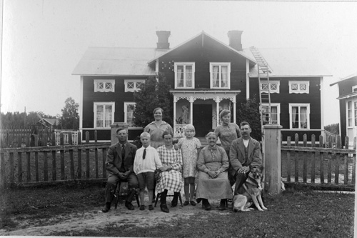 Bildtext: Bild tagen 1929 på Våtnäs. Släkt och vänner firar "Jannes" fru som fyller 90 år. (enligt vad som står noterat bak på kortet). Senare har följande synpunkt inkommit: Enl uppgift skall detta vara Inga Gustavssons 90-årsdag men då är årtalet fel, hon var född 1841.