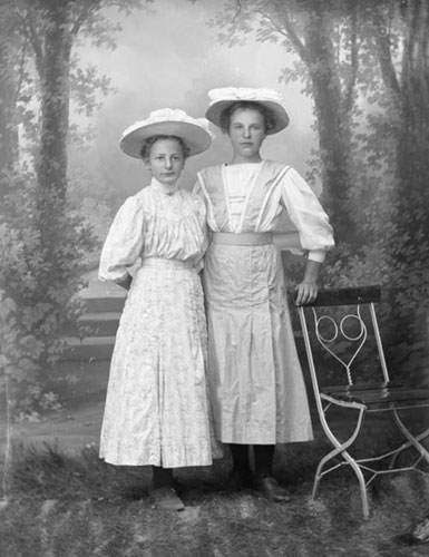 Bildtext: två kvinnor, hon t.v. liknar Hilda Johansson, gift Östberg. Se även bild nr: en-o-44