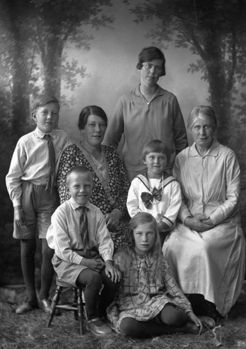 Sökord: kvinna, barn, flickor, pojke, byggnader, Motivkategori:gruppfoto Id:4552 Fotograf: okänd Fotoår: sent 1920-tal Bildnummer: IVH-23 Förening: Enångers hembygdsförening Land: SE Motivplats: Gävleborg, Enånger, Hökberg, Sörtjärn Teknik: Inskannat foto Rättighet: privat Originalplats: (visas ej publikt)