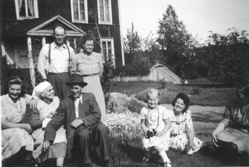 Bildtext: från en skidtävling i Tosätter. 3-Emil Melin, 1-Knut Westberg, 7-Gösta Jonsson – Hofors, 8-Arvid Westberg, 5-Folke Enberg, 4-John Johansson, 2-Axel Westberg, 6-Walter Jonsson