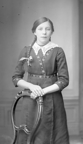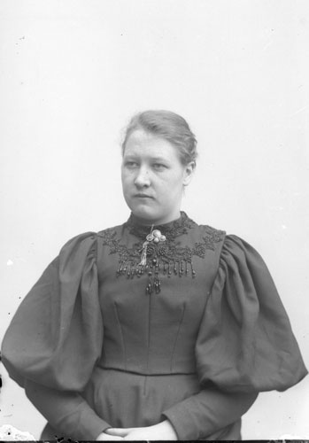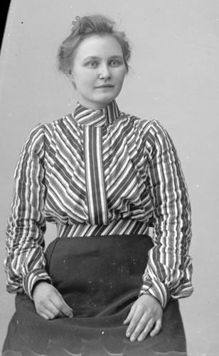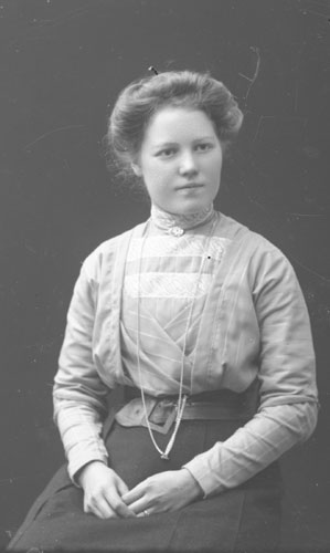 Sökord: Motivkategori:porträtt, kvinna Id:11611 Fotograf: Erika Nordin Fotoår: okänt Bildnummer: en-ab-226 Förening: Enångers hembygdsförening Land: se Motivplats: Gävleborg, Enånger Teknik: inskannad glasplåt 9x12 Rättighet: Enångers hembygdsförening Originalplats: (visas ej publikt)