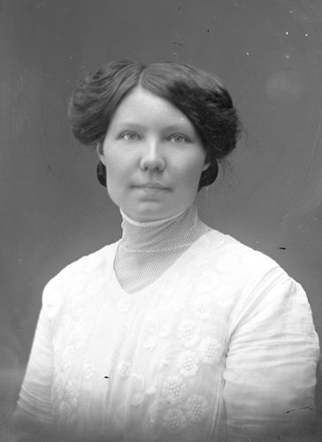 Sökord: Motivkategori:porträtt, kvinna Id:11632 Fotograf: Erika Nordin Fotoår: troligen 1900-1910 Bildnummer: en-ab-243 Förening: Enångers hembygdsförening Land: se Motivplats: Gävleborg, Enånger Teknik: inskannad glasplåt 9x12 Rättighet: Enångers hembygdsförening Originalplats: (visas ej publikt)
