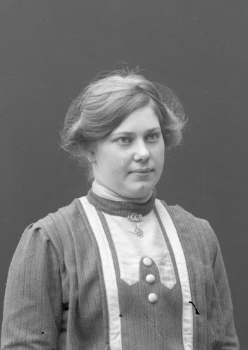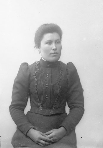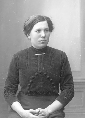 Sökord: Motivkategori:porträtt, kvinna Id:11633 Fotograf: Erika Nordin Fotoår: troligen 1900-1910 Bildnummer: en-ab-244 Förening: Enångers hembygdsförening Land: se Motivplats: Gävleborg, Enånger Teknik: inskannad glasplåt 9x12 Rättighet: Enångers hembygdsförening Originalplats: (visas ej publikt)