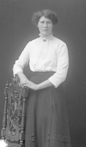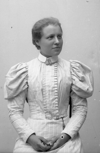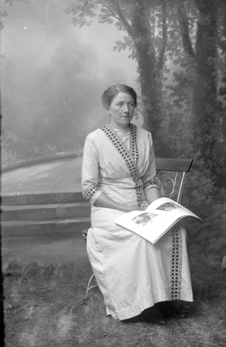 Sökord: Motivkategori:porträtt, kvinna Id:11652 Fotograf: Erika Nordin Fotoår: okänt Bildnummer: en-ab-263 Förening: Enångers hembygdsförening Land: se Motivplats: Gävleborg, Enånger Teknik: inskannad glasplåt 9x12 Rättighet: Enångers hembygdsförening Originalplats: (visas ej publikt)